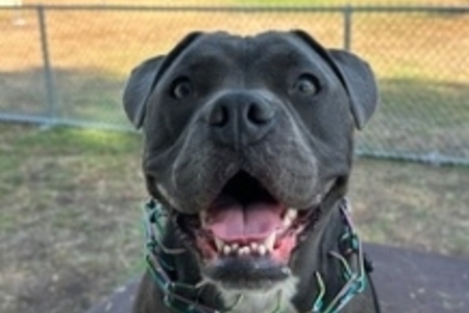 Meet Millie, a fun-loving and spirited four-and-a-half-year-old American Staffordshire/Pitbull Terrier mix from San Diego, CA. This gorgeous girl weighs around 50 pounds and is full of personality and affection. With her sleek gray-blue coat and adorable white chest and paws, Millie turns heads wherever she goes! But it’s her playful heart and love for cuddles that truly make her special.
