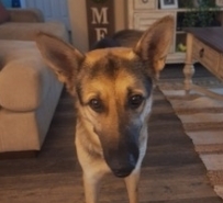 I found this beautiful boy roaming on the street.He has no microchip.He made himself at home right from the start.We are older and have a little 8 year old dog.he would need lots of run time and play time.My husband has bad hips and can't move as well as we would like.