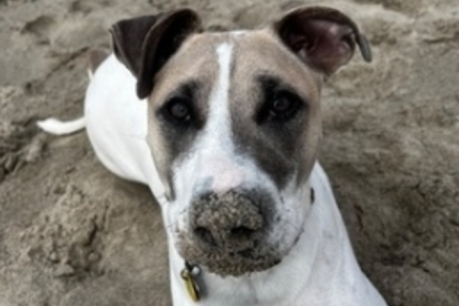 Leo *loves* the water! He’s not a huge fan of walks but if there is water involved he is so excited to be there. He love his frisbee and his antler bones as well. He loves playing tug-of-war with ropes and is a bug chewer!
