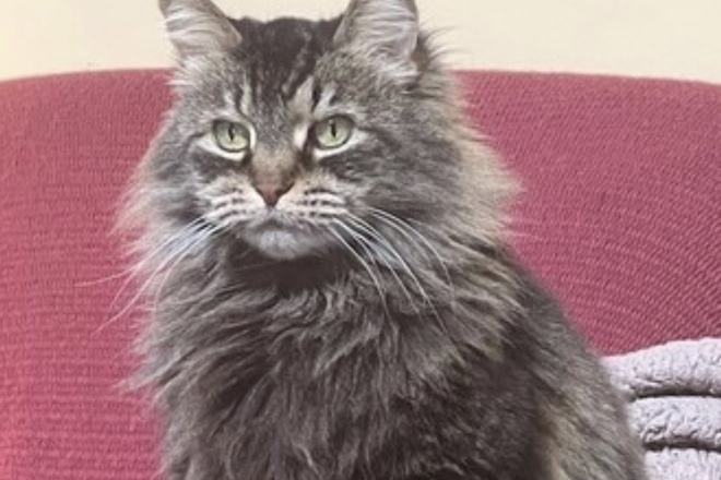 Waffle is a sweet, senior kitty looking for a new loving home. She has lived her best kitty life indoors with one owner who has adored her since she was adopted as a kitten 15 years ago. She lives in a quieter household with only adults - no kids and no other pets. She needs a new home because her current owner has developed health issues. She is sweet, but independent. She loves taking naps, playing with her toys, and getting pets, but mostly on her terms. She will purr as she sits next to you for pets, but she is not a lap cat. She knows her name and will come when called. Due to her age, she cannot jump higher than the sofa, so no worries about her jumping onto counters. She is vocal, especially during mealtimes (she loves tidbits of "kitty cheese"), and she is not a picky eater. Overall, she is in good health. She will meet you at the door after a busy day at work, and she would make a great companion for someone who enjoys the quiet home life.
