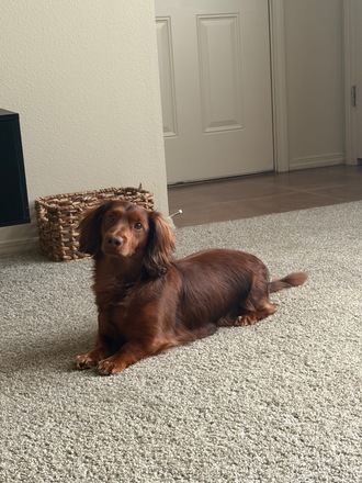This is Louie, he is a 2 1/2 year old full Dachshund. He would do best in a home without other dogs. He does well with cats and loves to cuddle on the couch and in bed. He is crate trained, potty trained and does great in the car. He doesn't like to share his food or toys. Does well at a dog park but needs to be watched in case he gets crowded and uncomfortable.