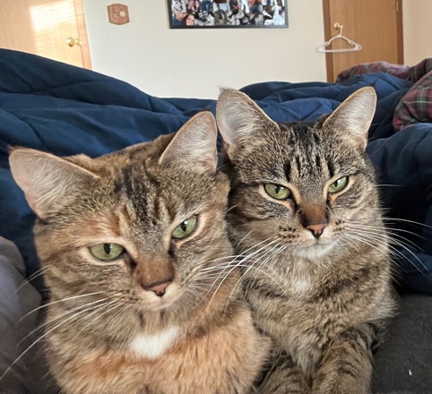 What do you feed your pet, and does he/she have any feeding quirks or preferences?: Meow mix - original blend. Dry food. Occasionally they get fancy feast wet food - that could help them adjust to a new family